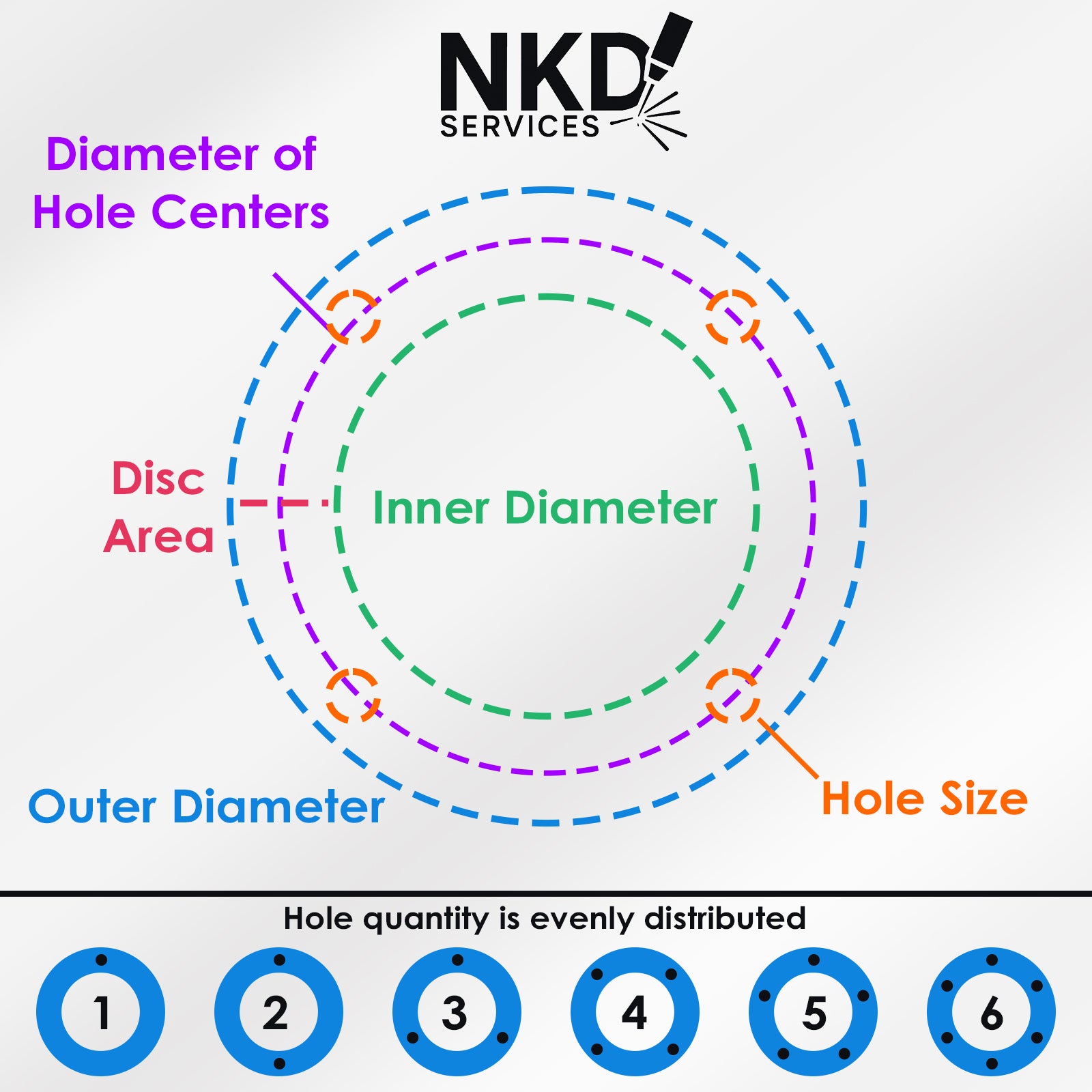 Custom mild steel flange rings cut to your chosen inner diameter, outer diameter, hole size, hole centre and hole quantity. Please note custom products are non-returnable.